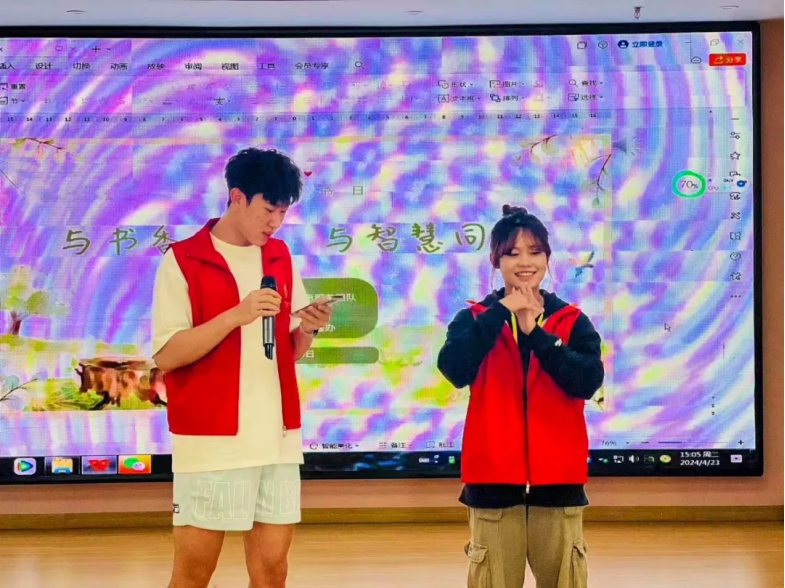2024年4月23日世界读书日当天,太阳成集团tyc122ccvip"青年志愿服务中心志愿者走进博苑南湖幼儿园为小朋友们带来了一场别开生面的科普活动。本次活动旨在鼓励广大小朋友养成阅读习惯,同时通过有趣的手势舞让小朋友们感受到运动的魅力。