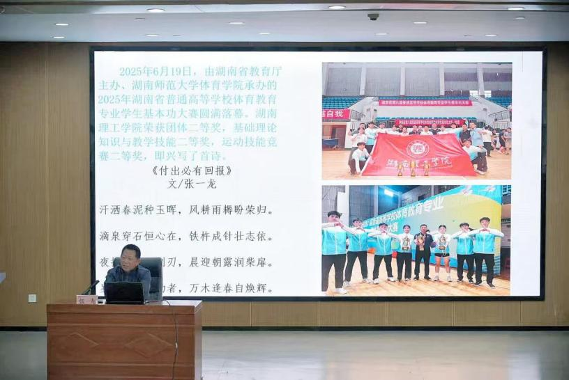 讲座尾声,张一龙以亮眼成绩印证竞赛育人成效,援引“做体育文化人”理念及“体育强则中国强”的论述,鼓励学子以赛为阶梯,成长为品德、技术、文化兼具的优秀体育人才。此次讲座为25级学子搭建了认知竞赛、拥抱成长的桥梁,为其专业道路注入强劲动力。