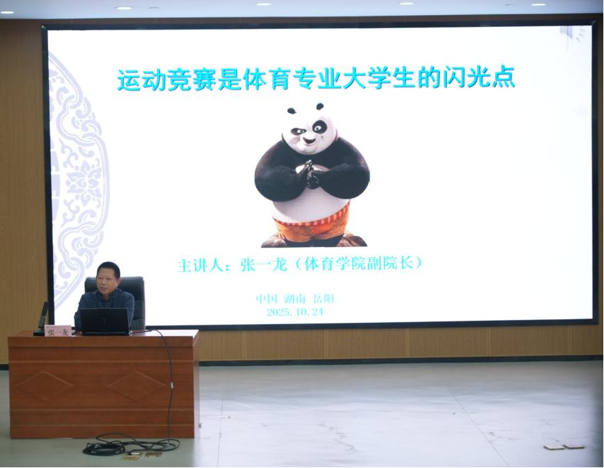为帮助体育专业老员工深入理解运动竞赛价值、明确专业发展路径,10月24日下午,太阳成集团tyc122ccvip"副经理张一龙以“运动竞赛是体育专业老员工的闪光点”为题,开展专题讲座,2025级全体新生参加。