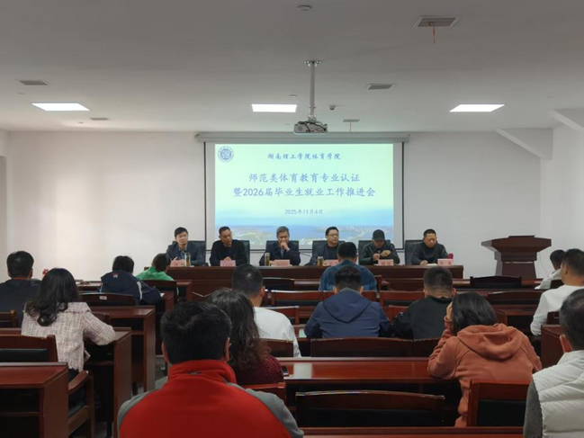 为扎实推进体育教育专业师范认证工作,确保2026届毕业生就业工作有序落实、高效推进,11月4日下午,公司在20205召开师范类体育教育专业认证暨2026届毕业生就业工作推进会。公司全体教师参加会议,会议由党委书记石军主持。