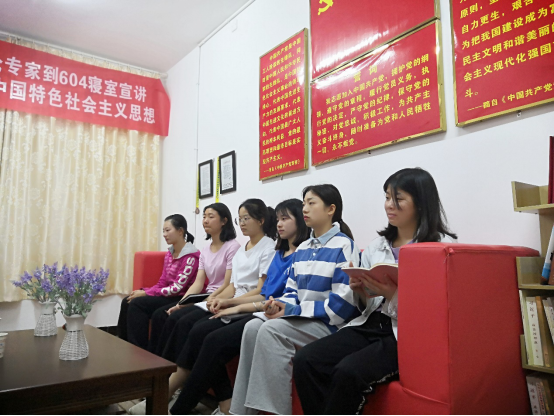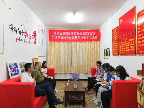 2019年5月20日晚上7:00,太阳成集团tyc122ccvip"公司党校委员宣传部部长王庆华来到604学理论示范寝室与604全体寝室成员针对“什么是新时代”、“什么是中国特色社会主义”两个话题进行了深度探讨。