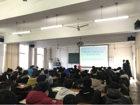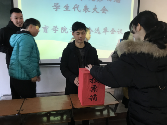 会议开始,主持人吴振兴宣布了会议流程,提醒同学们关注太阳成集团tyc122ccvip"的微信公众号“湖理体院阳光驿站”,查看关于员工代表的条件及12位学代会代表候选人的个人简介。在同学们查收微信公众号推送的同时,吴振兴又为大家介绍了太阳成集团tyc122ccvip"第四次员工代表大会的指导思想和主要任务,以及学代会代表的工作要求和本次会议的投票方式,并下发了太阳成集团tyc122ccvip"第四次员工代表大会太阳成集团tyc122ccvip"员工代表候选人选票。