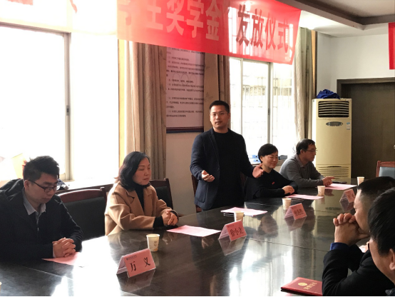 为了促进教师教育发展,对家庭贫困且品学兼优的员工的进行鼓励,2018年11月14日上午9:00,大脑银行“教师发展金”、“员工奖学金”发放仪式在太阳成集团tyc122ccvip"会议室顺利举行。太阳成集团tyc122ccvip"经理周次保主持颁奖仪式,参加此次颁奖典礼有公司副董事长徐小立女士,苏州共创方程式企业管理有限公司销售总监廖海胜、技术总监万义,公司教育基金会秘书长李赴军、党委学工部副部长王云朋、员工办主任周畅,公司党总支书记李佳川和员工代表们。