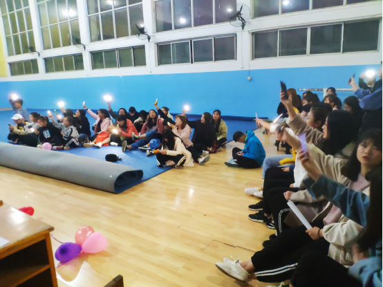 晚上七点整,女生们早已纷坐在观众席上,五彩的气球装饰着整个舞蹈房,欢快的音乐充斥着全场。这不,在主持人的介绍下,332寝室的一首《后来》瞬间点燃全场,同学们纷纷跟着哼唱。歌曲,小品,舞蹈各种花式层出不穷,台上舞动的身姿,台下摇曳的手灯,全都洋溢着热情的气氛。