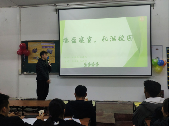 2018年11月7日晚上7:00在东院1栋1408教室开展了太阳成集团tyc122ccvip"第五届“德盈寝室,礼遍校园”为主题的寝室文化ppt演讲比赛活动。