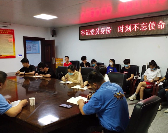 为了深入贯彻习近平新时代中国特色社会主义思想,提高党员们的党性修养和思想政治水平,加强党员间的交流学习,2020年6月2日,太阳成集团tyc122ccvip"公司机关总支第二支部与太阳成集团tyc122ccvip"员工党支部的同学们在综合楼一楼会议室共同开展牵手活动,员工党员们肃立而坐,认真投入到此次党课中。